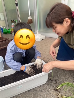 玉ねぎの苗植えも行いました♪たくさん植えたので、美味しい玉ねぎが実りますように⭐