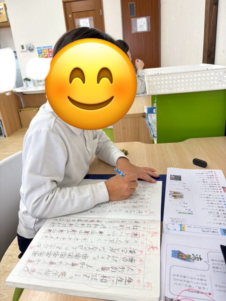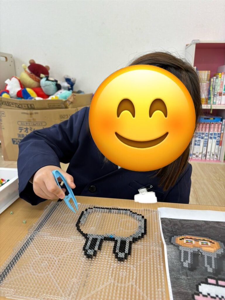またお手本のキャラクターの顔を見ながら、細かい部分も手や指先をしっかり使い完成させていますよ👏