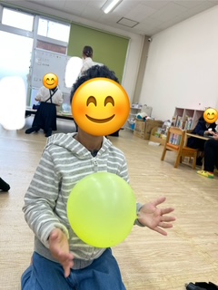 風船のような触り心地のボールを、自分で上に投げて降りてくる時にキャッチしました!