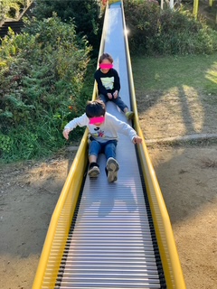 長~いローラーコースターを何回も滑ったり、ジャングルジムやネットで遊んだり、ターザンロープに挑戦したり…それぞれ好きな遊具で楽しみました( *´艸`)
