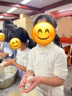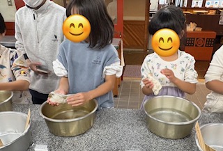 待ちながら、すり身の感触に「フシギな感じする!」や「あれににてる!」とお友達と共有していましたよ💭