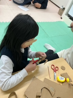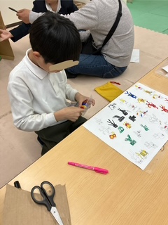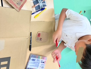 段ボールを使って、タブレット、スマホ、腕時計を作るお友だち!!