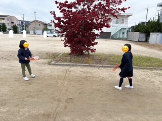 バドミントンでは、オリジナルなコートを作って、楽しんでいる子もいました🏸