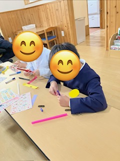 みんな集中してペンやシールを使ってオリジナルの飛行機🛫を作っていましたよ👏