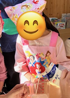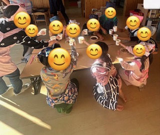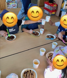 この日はジュースも用意して、日直さんの「かんぱ~い」の掛け声でみんなで乾杯をしてホットケーキを食べました!