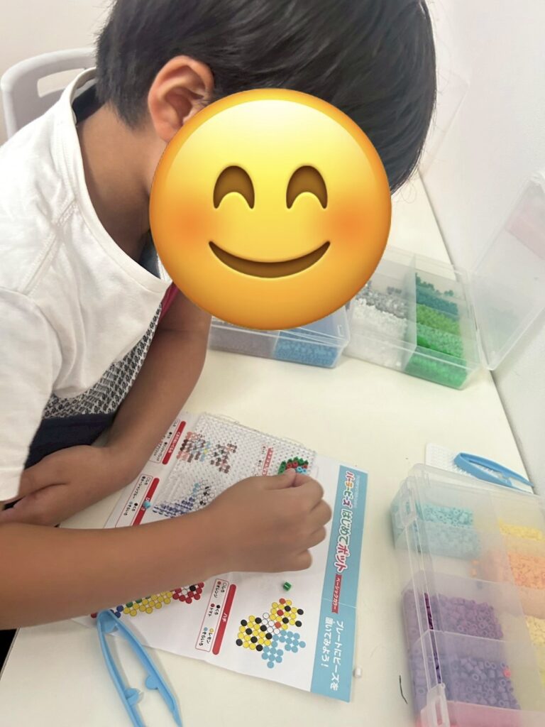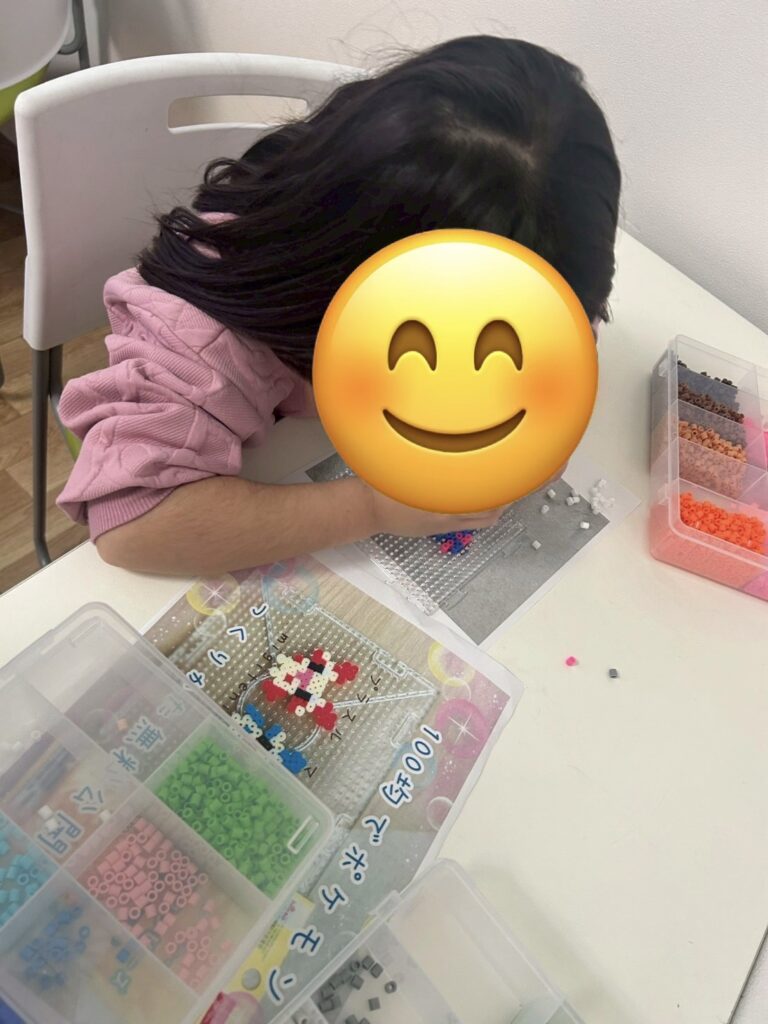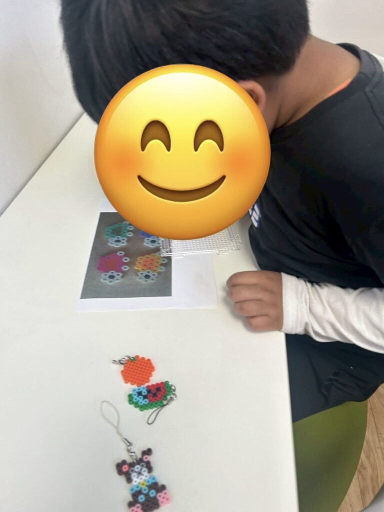 自由遊びでは、気候も良く外の砂場で大きな山を作ったり、室内ではアイロンビーズでキーホルダーを作るのが流行っていてみんな真剣な表情で頑張っていましたよ✨