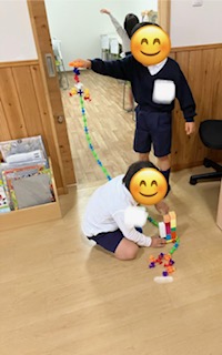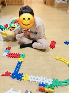 自由遊びでは、ぬいぐるみや、ブロックで、想像力豊かに遊んでいました!!