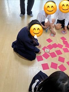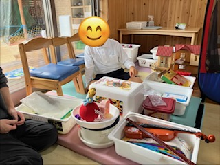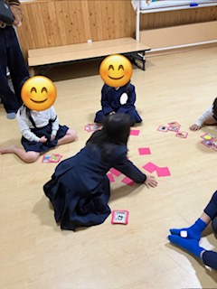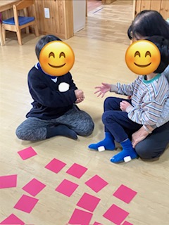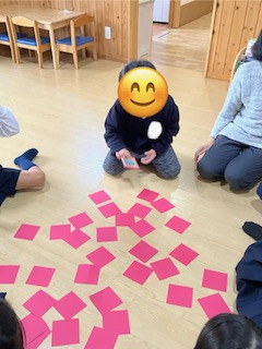 床に伏せたカードとおもちゃ箱にある本物の品を当てるゲームをしましたよ🌟