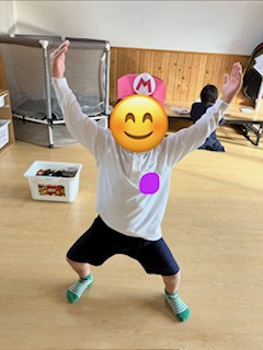 スタッフにマリオの帽子Ⓜを作ってもらい、うれしくてずっと被って遊ぶ姿も🤩