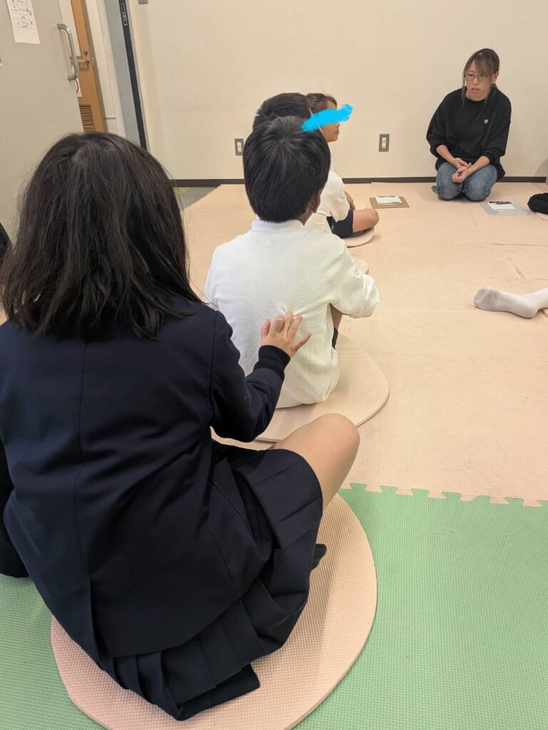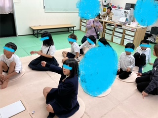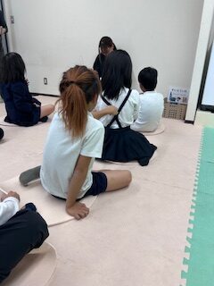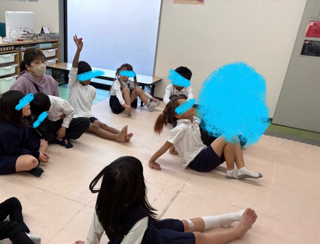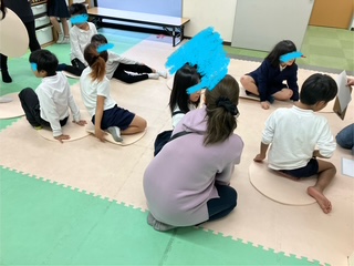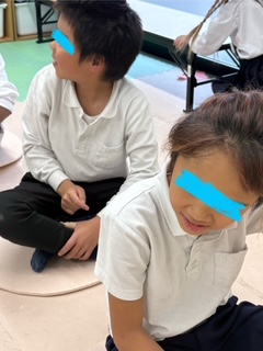 今日の集団活動は【背中で伝言ゲーム】をしました!!
