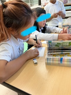 一番前の子が受け取った内容を紙に書いて答えるというゲーム!