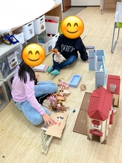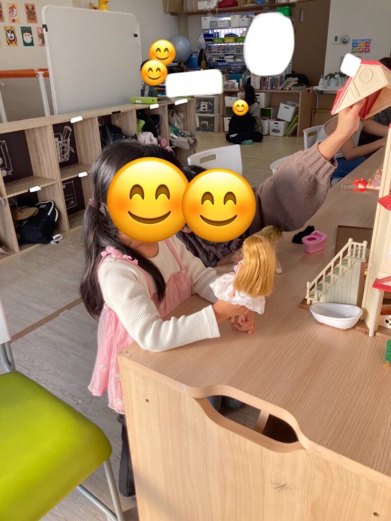 自由時間ではトランポリン、粘土、絵本、おままごとなどをして遊びました💕