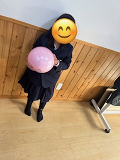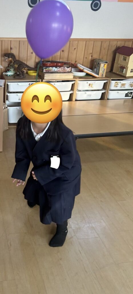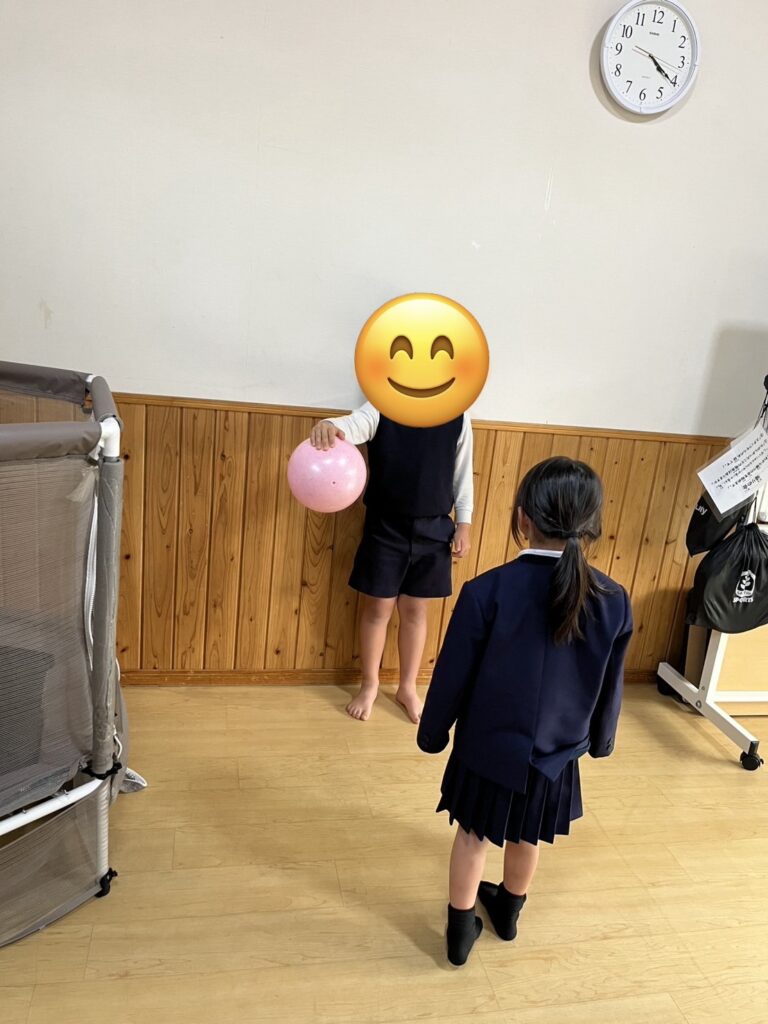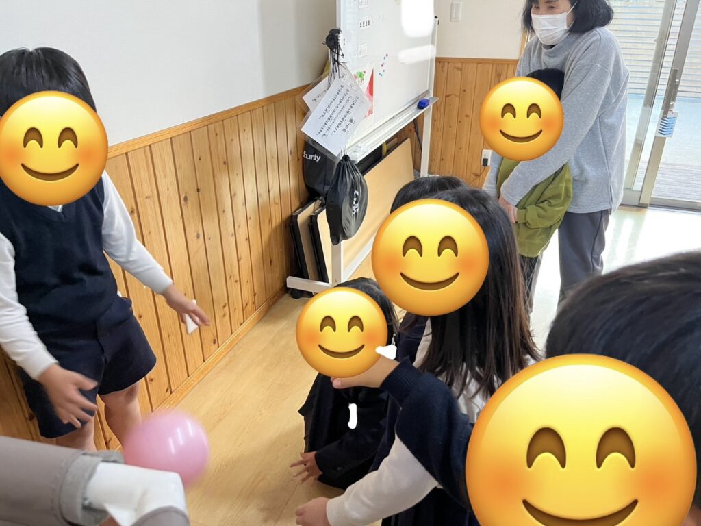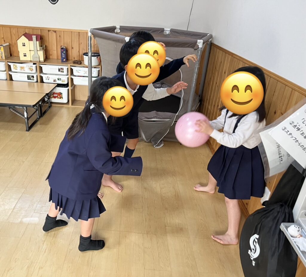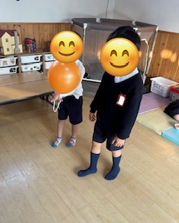 自由遊びは中でけん玉をしたり、昨日は風船に紐をつけて落ちるのが早くなった風船で風船バレーをしていました!