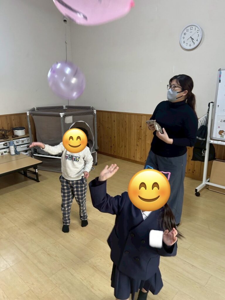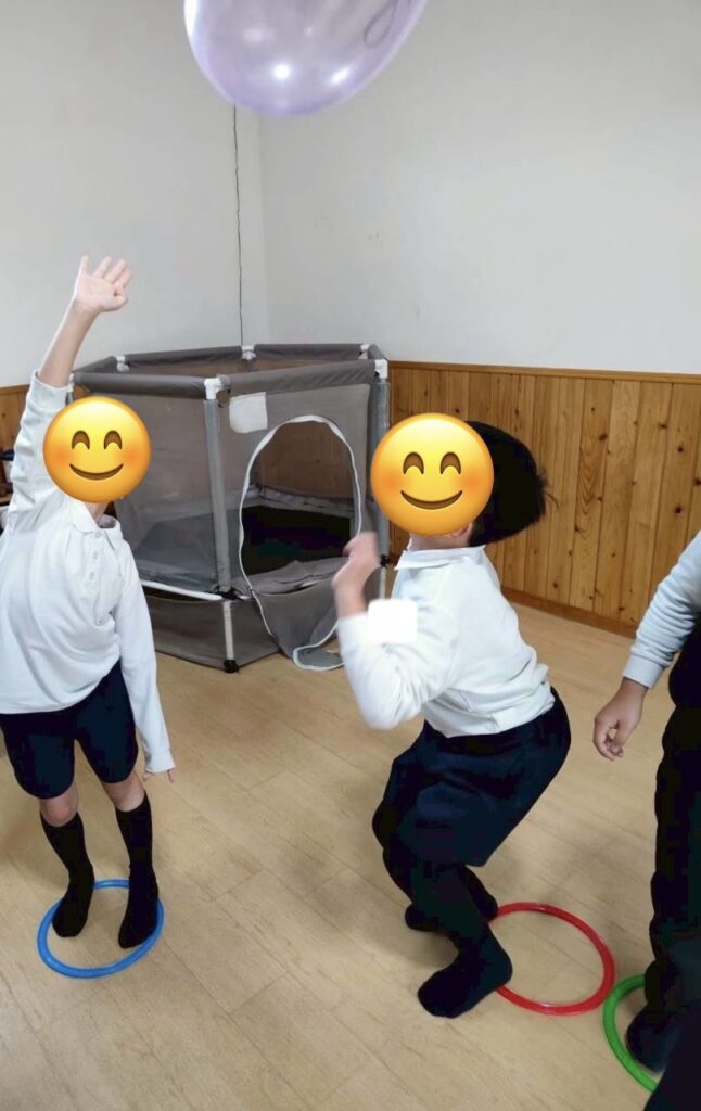 自由遊びでも、まだ楽しくて風船を楽しんでいる様子が微笑ましかったです。