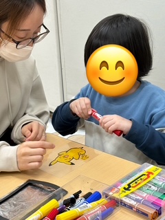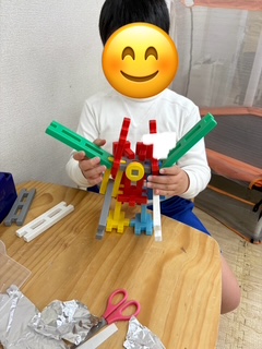 集団活動前には「やりたくない…」と言っていた子も途中から気持ちを切り替えて最後まで完成することができました!