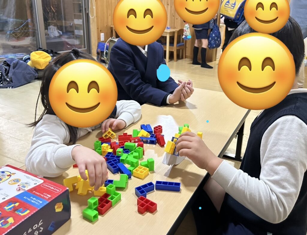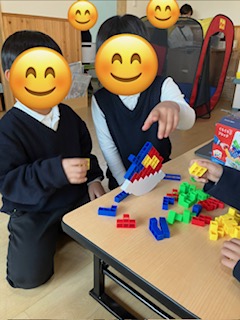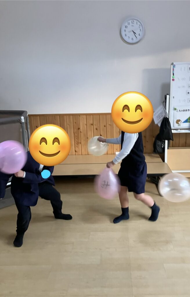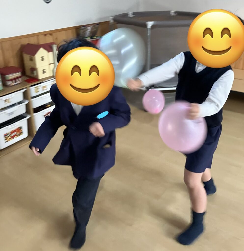 自由遊びでは、ニューブロックや風船🎈で遊んだり外で定番の鬼ごっこや大繩をしたりして今日も元気な声が響きわたっていましたよ✨