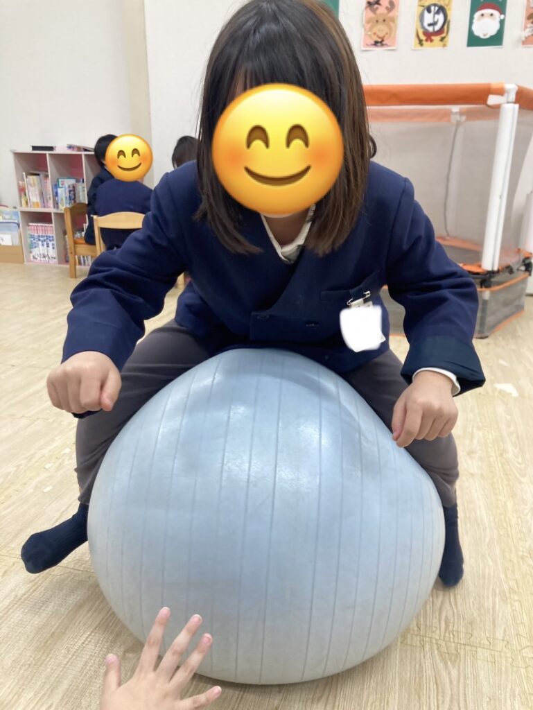 バランスボールでは、足を付けずに30秒近くバランスをとる姿に拍手がおこりましたよ👏✨