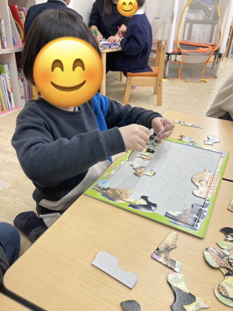 最初は「難しい…」と手が止まる場面もありましたが、ピースを1つずつ確かめながら挑戦。コツをつかむと集中力が一気にアップし、どんどん完成に向かって進んでいきました✨完成した瞬間は思わず笑顔に!うれしそうに見せてくれる姿が印象的でした🥰