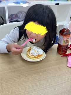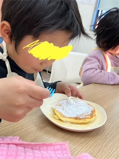 お楽しみ会では、ホットケーキを作りました💛