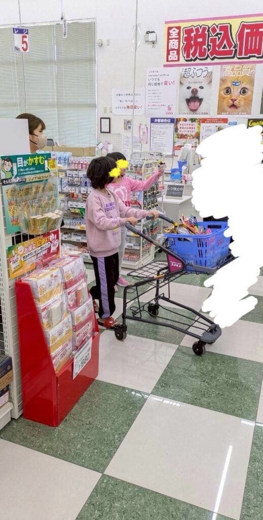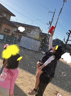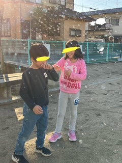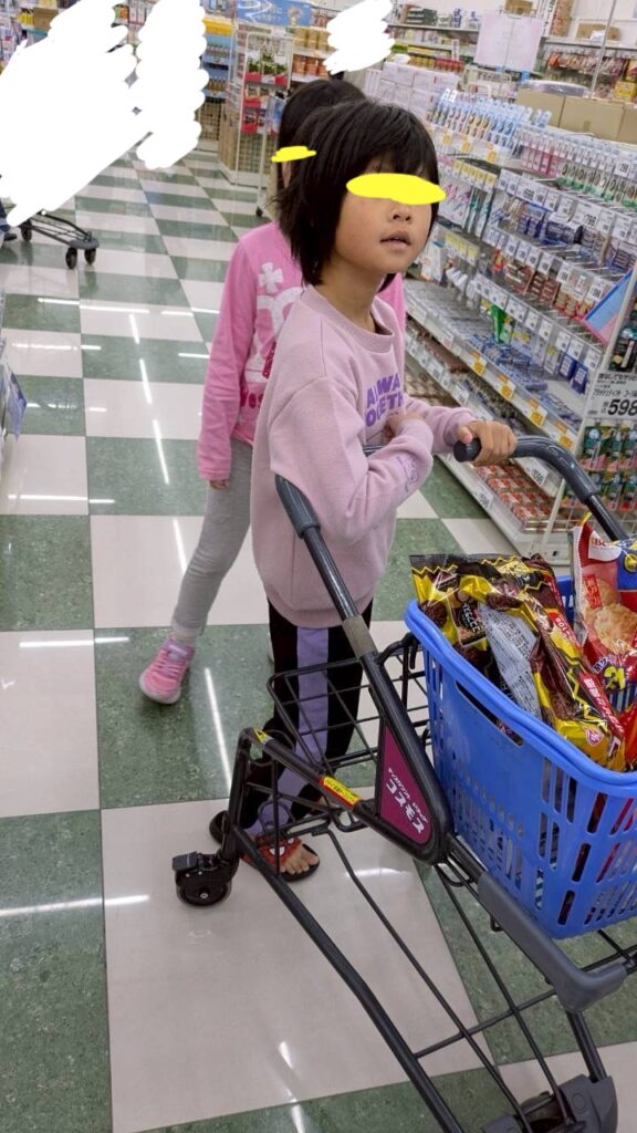 午前中はみんなでシャボン玉などのおもちゃやおやつを買いに行きました。