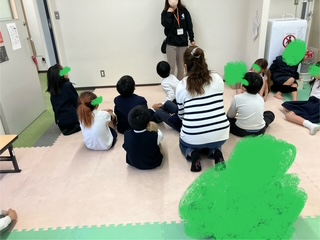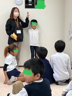 集団活動は「探偵ゲーム」をしました💡「その人はこの部屋にいます」「その人は靴下を履いています」等のヒントを頼りに誰のことを言っているのかを推理しました。「3年生以上の人」と言うヒントでは子どもたちの中の誰なのかを考えていました。問題を出したお友だちはニヤリと笑って「大人も3年生以上よ」と意外なヒント。子どもたちも大人も頭をひねりながら考え、大盛り上がりでしたよ😊