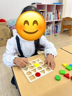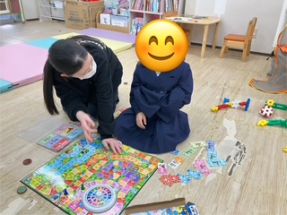 スタッフが「緑色の丸いブロックを上から〇番目に置きます。」など上下や左右から〇番目というように、伝えていくのをよく聞きながら取り組みましたよ!