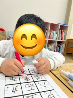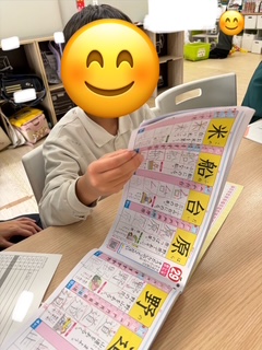 【学】の漢字から『ツがあるよ!』『向きを変えるとトにも見えるね♪』など、たくさん見つけて行き色ごとに印をつけていきましたよ🥰