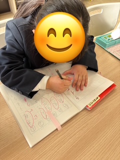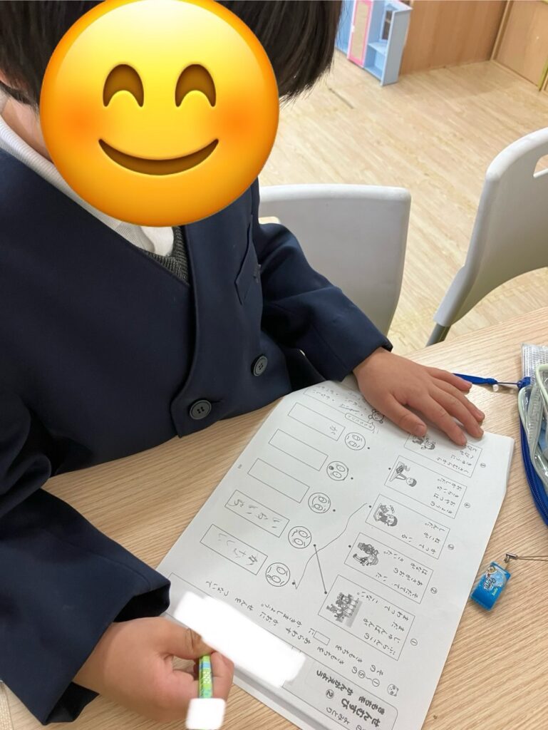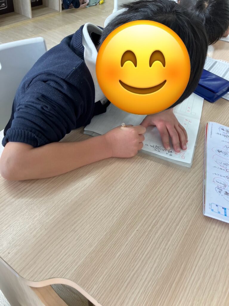 「谷川さん、自分でできるから大丈夫だよー。」と言いながらカタカナや漢字を丁寧に書いています🪄