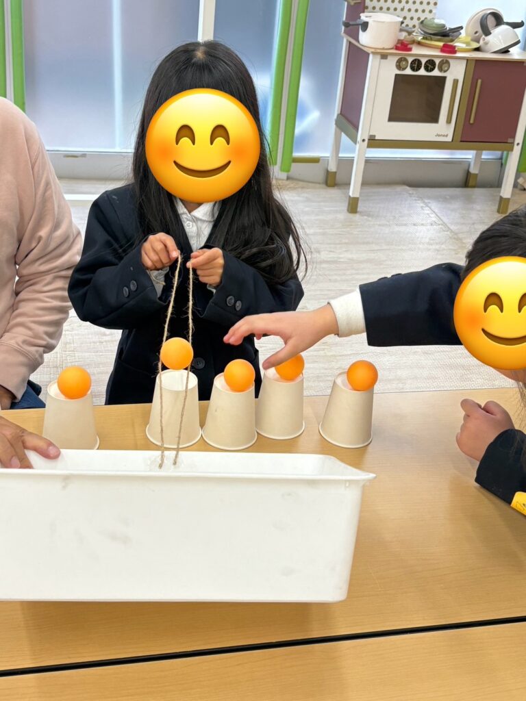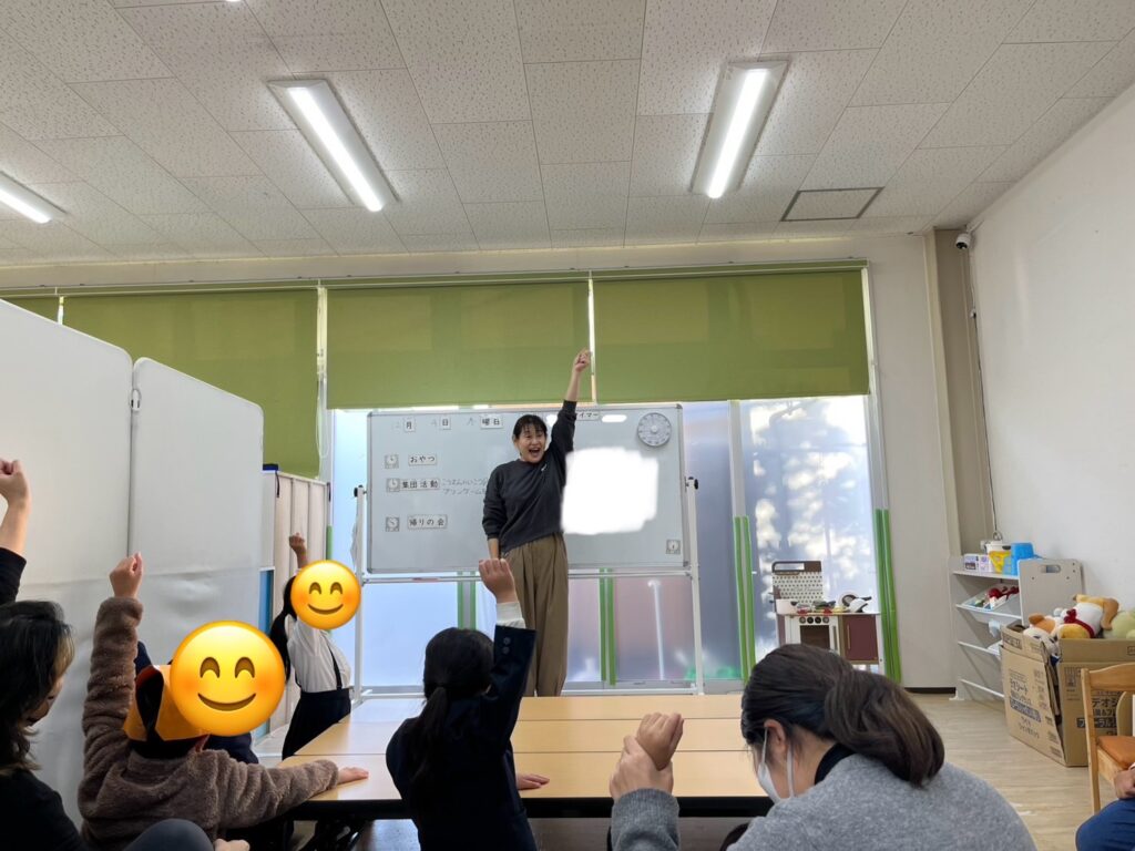 プリンゲームはスタッフのかけ声に合わせて子どもたちが決められたポーズをしたり、特定のかけ声で目の前にある物を取る反応を鍛えるゲームです❣️