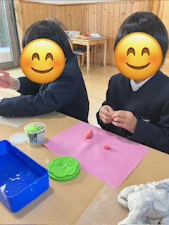 室内遊びでは、卓球、ニューブロック、粘土、お絵描き…色々な遊びをお友だちと考えながら遊んでいましたよ😄