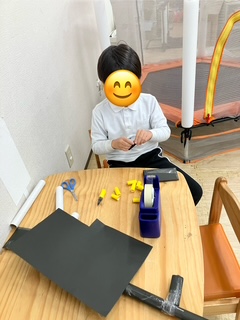 お友達が黒を貼ったら、茶色の画用紙を交互に貼っていくようにして、お友達と協力してレンガも完成できました☺️