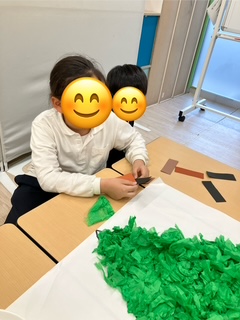 ツリーには両面テープが貼ってあるので、みんな簡単に貼ることができ、楽しく取り組むことが出来ました✨