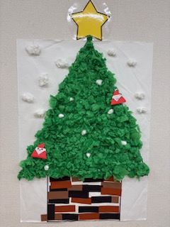 この日は、集団活動「クリスマスツリーを作ろう」をしました。