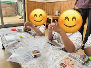 実は活動でする予定はなく趣味で作ったものを飾っていると複数の子ども達から「これ作りたい」と言う声が聞こえたので急遽活動予定に入れました。