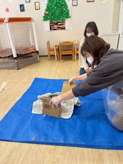 子どもたちが安心して安全に過ごせ、迅速に対応できるよう、消毒方法や動線の確保、保護者への連絡、汚物処理など実践を通して再確認をしました🌟