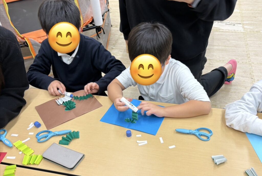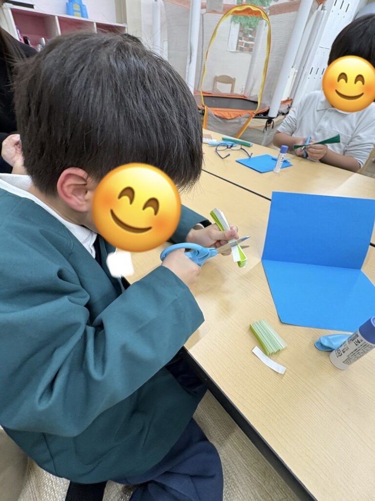 糊を傾けて細かい箇所に糊を付ける等、工夫して取り組んでいました😊