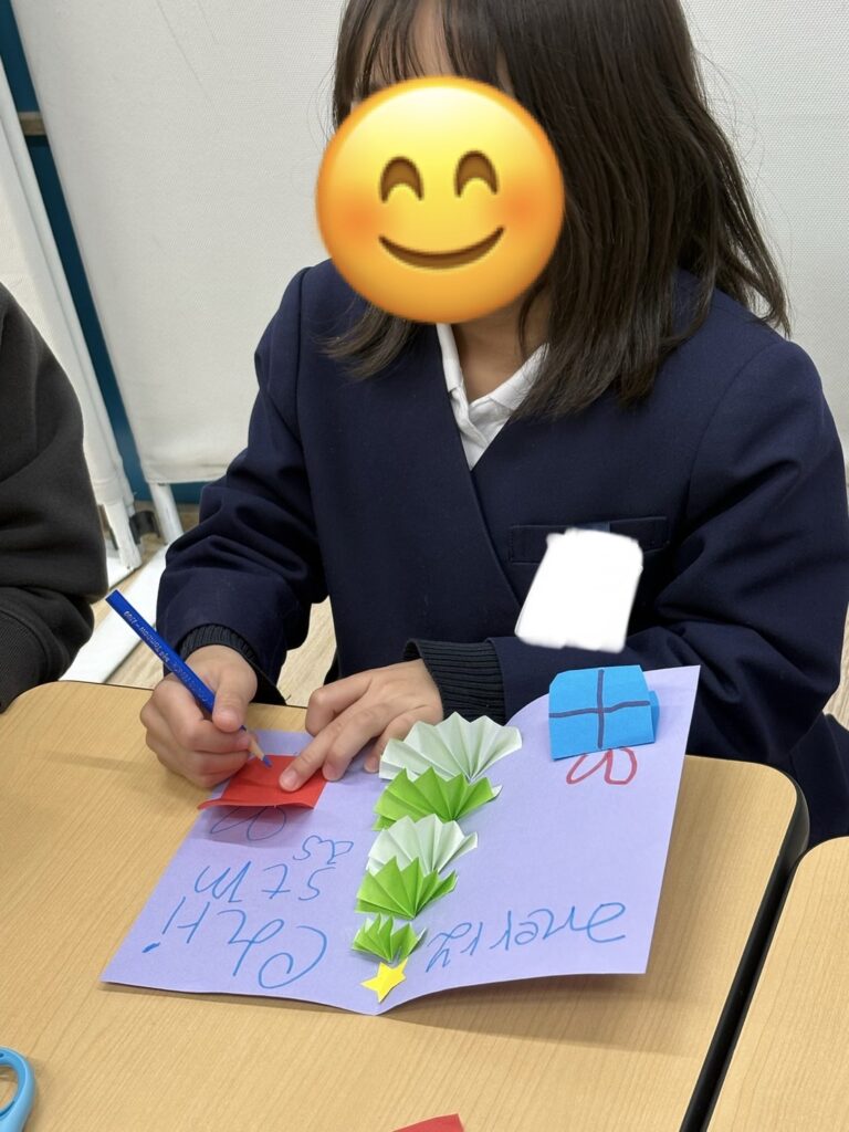 プレゼントの形や文字、絵、色とそれぞれの好きが詰まったクリスマスカードが完成しました✨