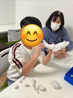 粘土遊びでは、凝った作品を手早く作りあげるお友だちがいますよ(^^)v
