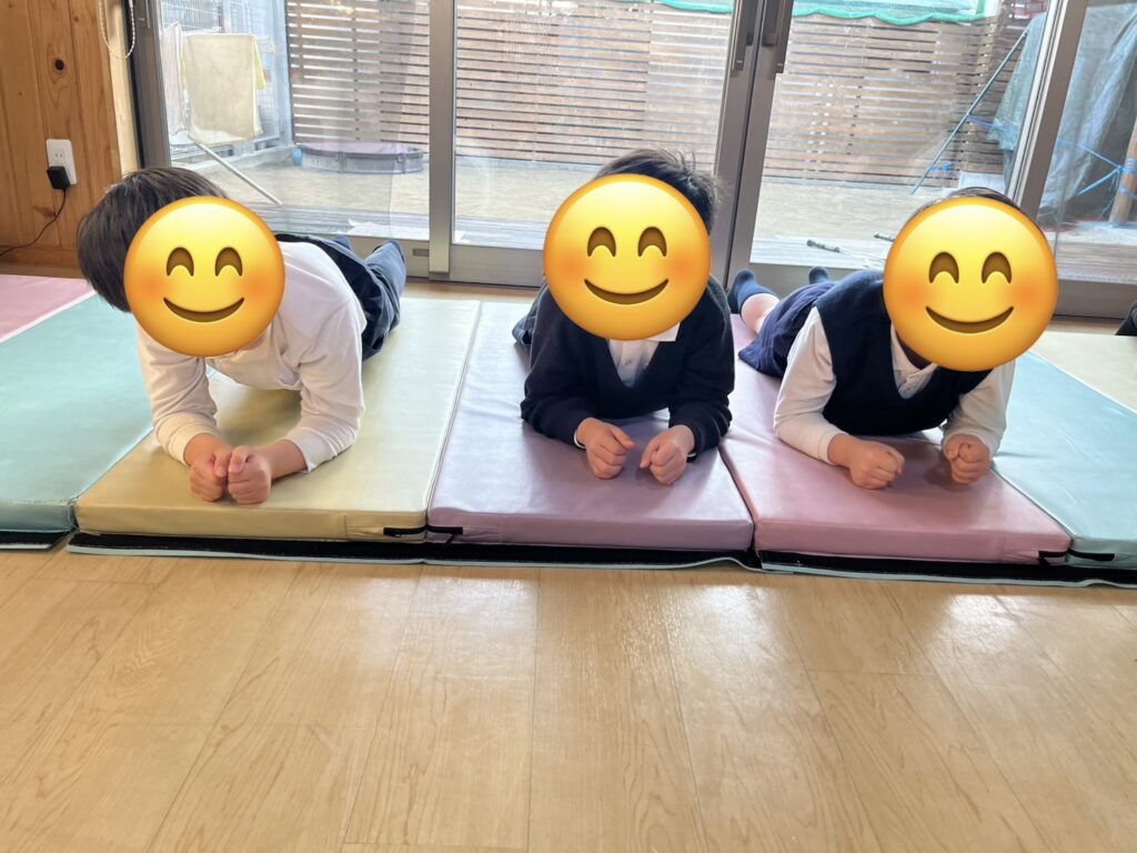 体を使った活動が好きな子ども達は、体幹を鍛える、筋トレストレッチを頑張りましたよ(*^-^*)