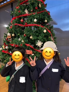 帰る前に、エフピコアリーナ内にあるクリスマスツリーをみて帰りました🎄✨天井に届きそうなくらい大きくてきれいなツリーにみんな大喜びです✨エフピコのスタッフの方が、ツリーのイルミネーションを点灯してくださり、みんなで記念撮影をさせていただきました🤗ありがとうございました!