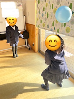 室内では風船で遊んだり、粘土で作品を作ったり…