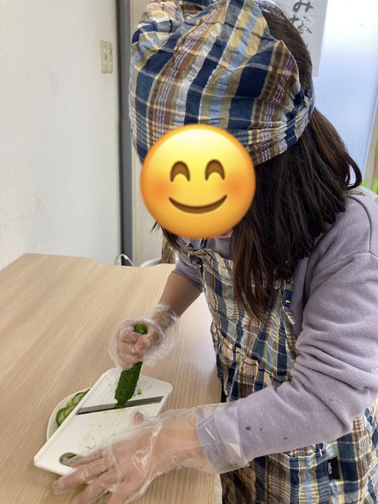 きゅうりも薄くスライスしていきますよ!(^^)!