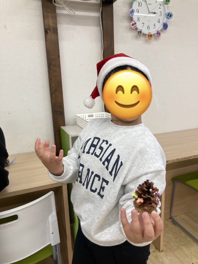 昼からのお楽しみ会では、松ぼっくりツリーを作りましたよ🎄