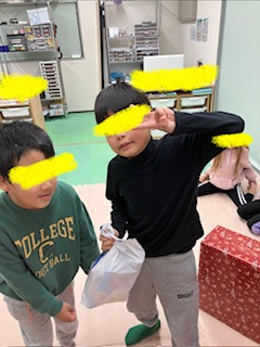 こんにちは。みなみん福山川口の來山です。皆さんのお家にはサンタさんは来ましたか?みなみんにもサンタさんがやってきてお友だちやみなみんの事業所にプレゼントをしてくれましたよ🎁子どもたちは大喜び!!「サンタさんって井上さんじゃろ?」と言う鋭い指摘もありましたが😅いえいえサンタの国からやってきて、トナカイは駐車場で待っていてもらっていましたよ⁉