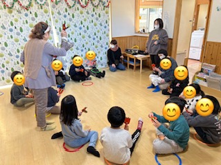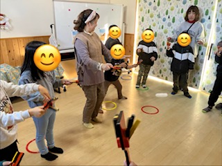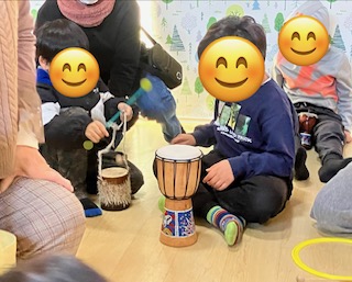 その後も鳴子を鳴らしながら体を動かしてみたり、くるみ割り人形の音楽に合わせて合奏してみたり普段触ることのない楽器に触れてみたり、聞いたことのない音を聞いたりと素晴らしい体験をさせてもらいました!