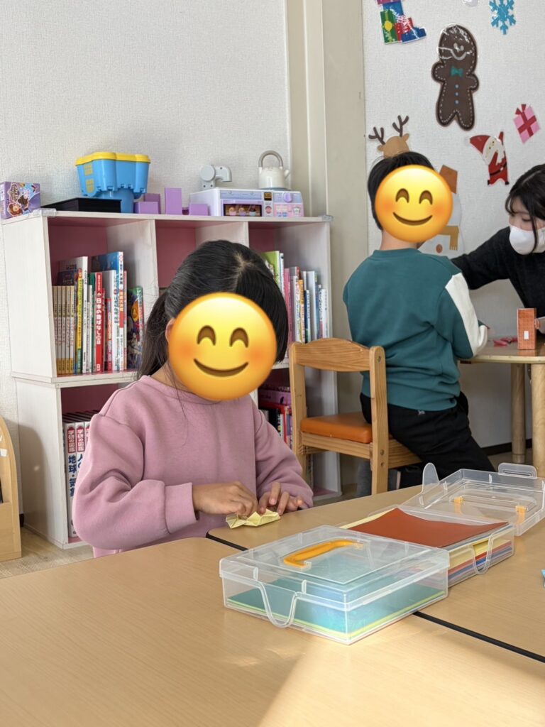 折り紙でバラを作りスタッフに配る子や、少し難しいペーパークラフトに挑戦する子もいましたよ✨