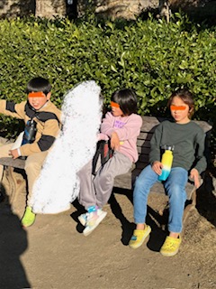 ミュージアム前の広場で、朝の会で選んだおやつを食べました!