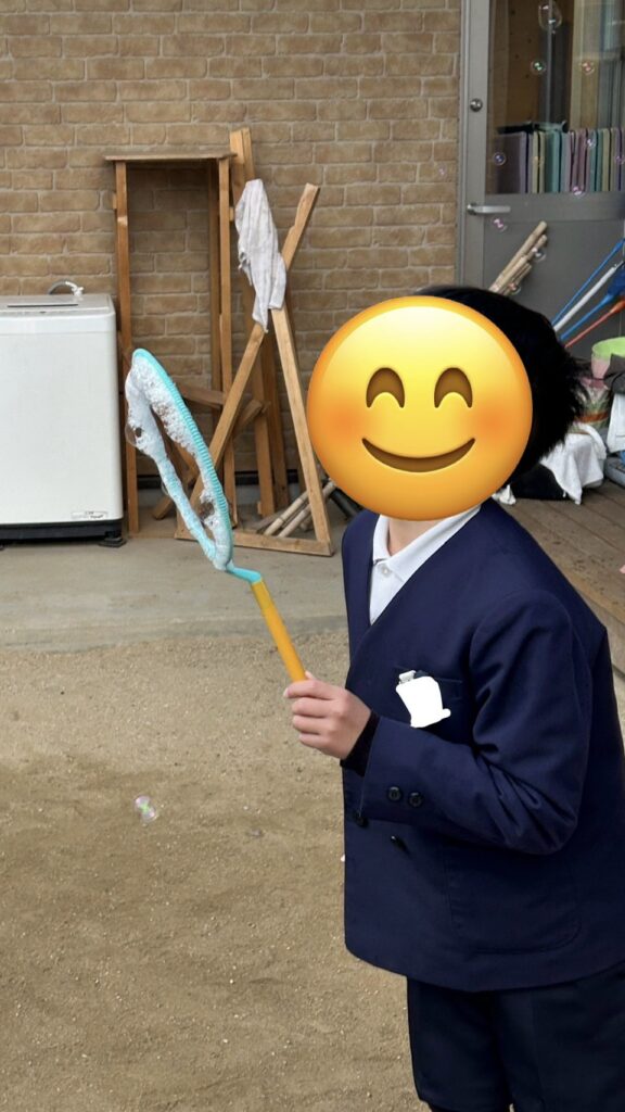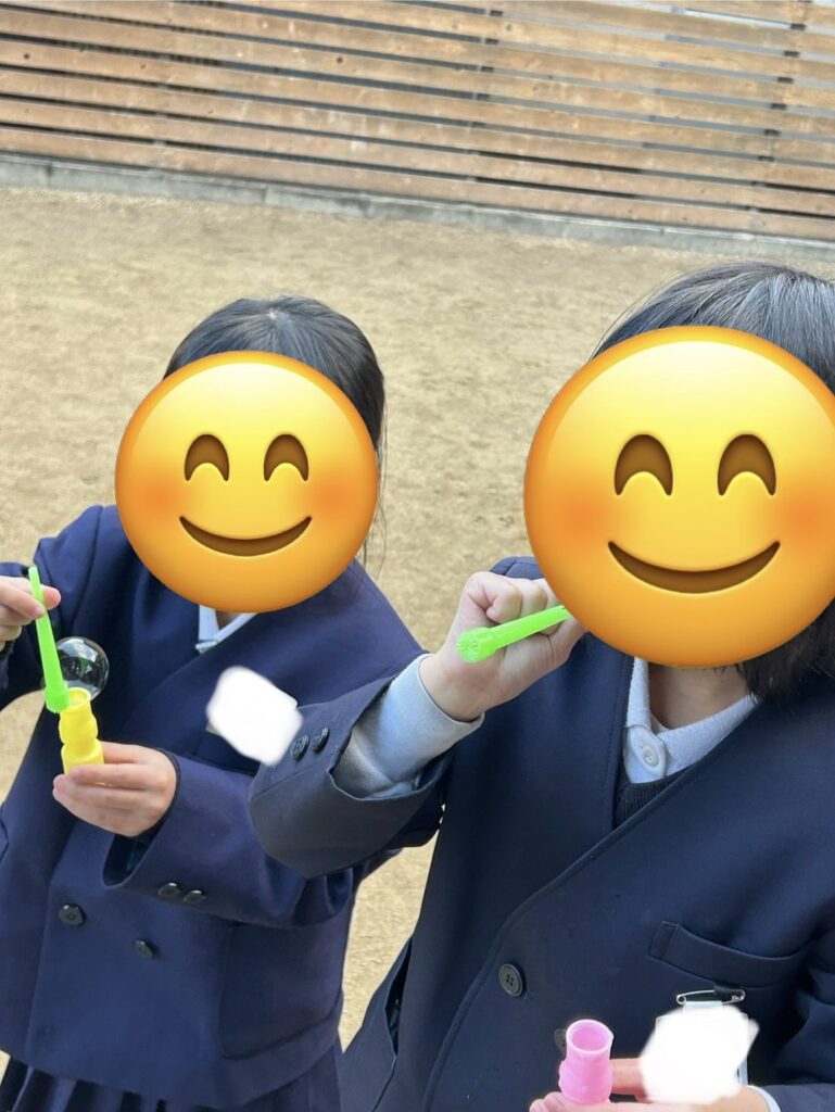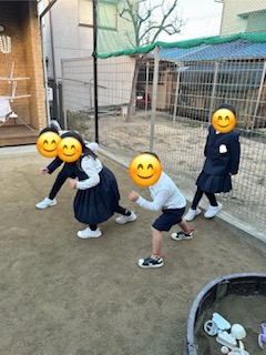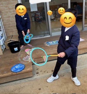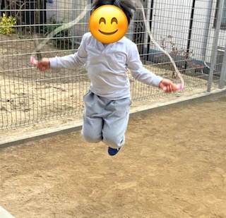 お外では鬼ごっこも相変わらずの人気ですが、昨日は学校でしている縄跳びやシャボン玉、徒競走をしているお友だちもいました!
