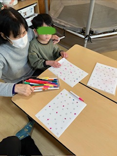 【なべなべそこぬけ】、【マッチング塗り絵】、【グラグラ玉入れ】の3つのグループにわかれて取り組みました😊