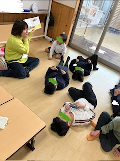 帰りの会ではなまけものヨガの絵本を見てなまけものになって絵本の動きをまねしましたよ😄
